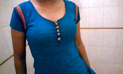 Indian college college girl in H.O.D.'s bathroom
