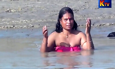 Indian house wife bathing anita style