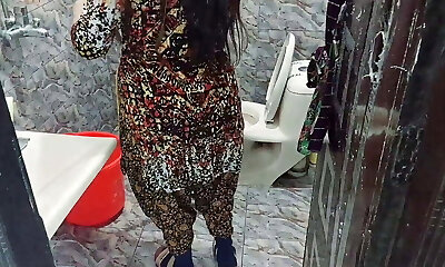 Tamil aunty washes clothes in bathroom when a fellow comes & gives her raunchy orgy - And give something behind (Huge cumshot)