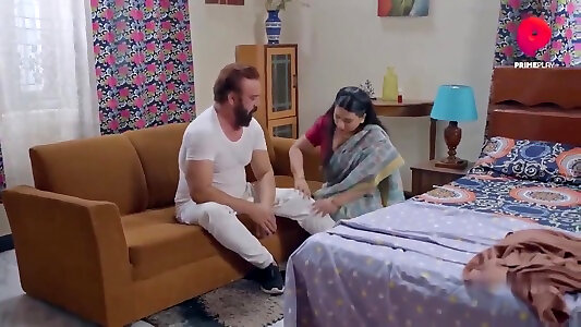 印度Bhabhi已经爆炸了与年轻的家伙在卧室,印度,印地文