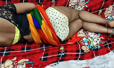 印度女仆阿姨穿着纱丽和给她的阴部的所有者,所有者和servent性别的视频